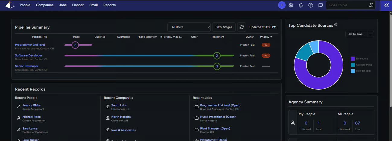 You can now select and view multiple users’ data across the People, Company, and Job Dashboards, as well as in the user filter of the Pipeline summary widget on the main dashboard. Each filter remembers your selection, giving you more flexibility to review and track work across your team.